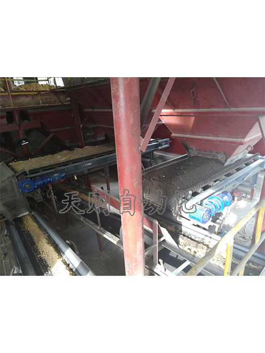 皮帶秤稱重橋架安裝于輸送機架上,當物料經過時,計量托輥檢測到皮帶機上的物料重量通過杠桿作用于稱重傳感器,產生一個正比于皮帶載荷的電壓信號。在皮帶秤上有一個稱重傳感器裝在稱重橋架上,工作時,將檢測到皮帶上的物料重量送入稱重儀表,同時由測速傳感器皮帶輸送機的速度信號也送入稱重儀表,儀表將速度信號與稱重信號進行積分處理,得到瞬時流量及累計量。速度傳感器直接連在大直徑測速滾筒上,提供一系列脈沖,每個脈沖表示一個皮帶運動單元,脈沖的頻率正比于帶速度。稱重儀表從稱重傳感器和速度傳感器接收信號,通過積分運算得出一個瞬時流量值和累積重量值,并分別顯示出來。