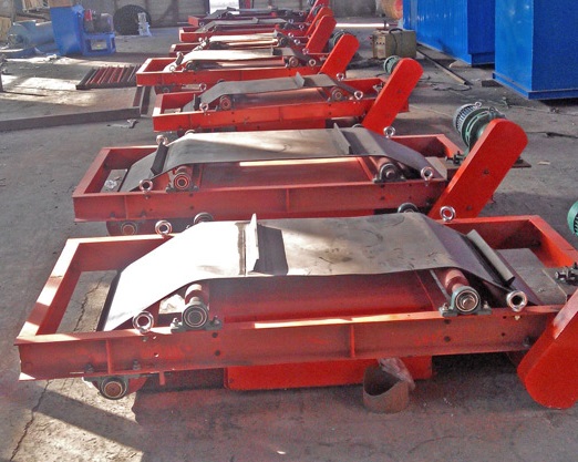 永磁懸掛除鐵器采用高場強永磁體組成復合磁系,雙極結構,計算機模擬磁路設計,極性吸附面積大,能自動吸附運動物料中的鐵磁雜質。整機設計優化改進后,永磁鐵芯在惡劣環境下十年磁力降低不超過4%,各項技術指標均達到相關標準。該機器可與不同類型的帶式輸送機、振動給料機或斜槽一起使用,并可從移動的物料中去除各種鐵磁性物質。懸掛形式和位置的選擇參考如下: