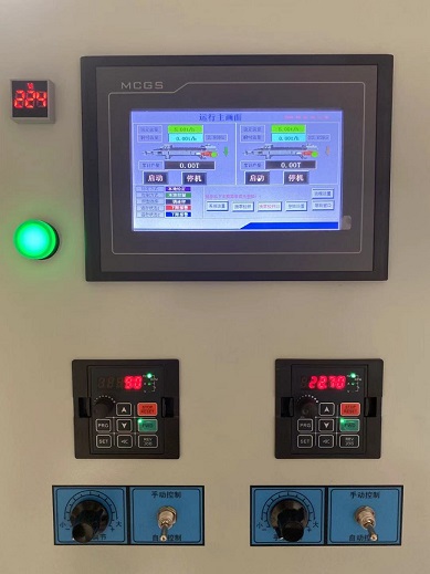 PLC觸摸屏變頻控制柜中包括裝置本體,裝置本體的頂部設(shè)置有頂板,頂板采用軟塑鋼材料制成的,其表面涂有防腐蝕涂料,裝置本體的正面設(shè)置有柜門,柜門表面安裝有液晶觸控屏,液晶觸控屏采用電容屏幕制成,PLC控制器與觸摸顯示屏相連接,傳感器安裝在供水管路上,變頻器與供水泵組相連接。 液晶觸控屏的底部設(shè)置有若干控制按鍵,控制按鍵與裝置本體信號(hào)相連接,裝置本體的底部設(shè)置有底板,底板的下部安裝有減震裝置,減震裝置的底部設(shè)置有底座,裝置本體的右側(cè)面裝設(shè)了警報(bào)燈,警報(bào)燈和裝置本體的信號(hào)相連接,裝置的本體里部裝設(shè)了若干掛板,掛板與裝置本體無縫焊接,掛板表面預(yù)留有若干掛鉤孔, 該P(yáng)LC觸摸屏變頻控制柜控制方便,安全性能越高,通過PLC可以支持遠(yuǎn)程控制,使用效率越高,使設(shè)備運(yùn)行流程及運(yùn)行狀況簡潔明了、形象直觀,各功能模塊及報(bào)警情況一目了然,方便使用和檢修,節(jié)能效果越加顯明。